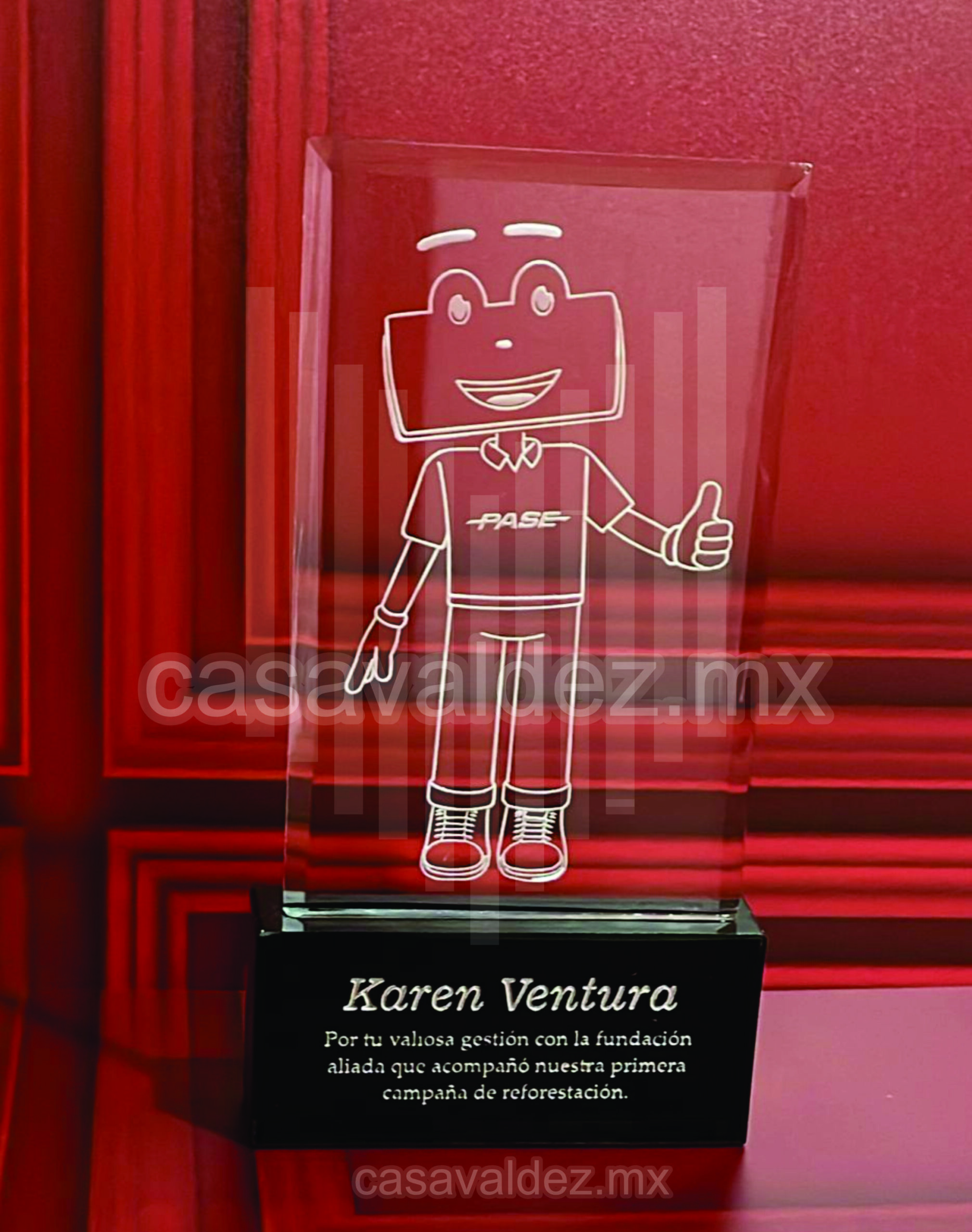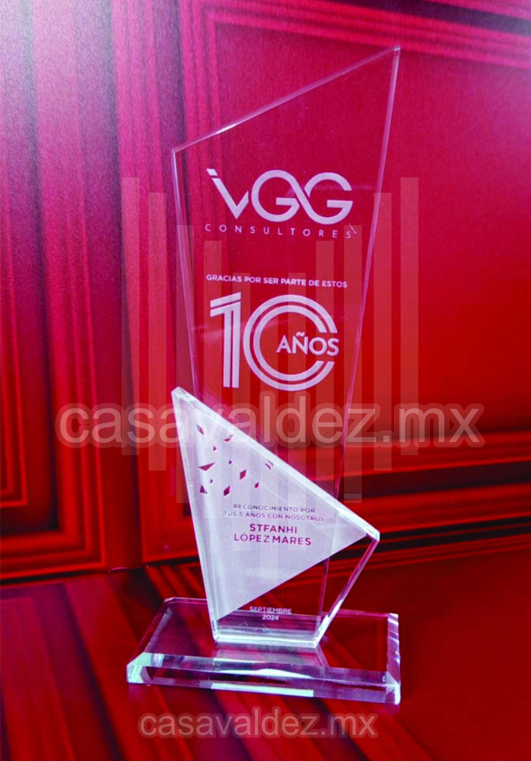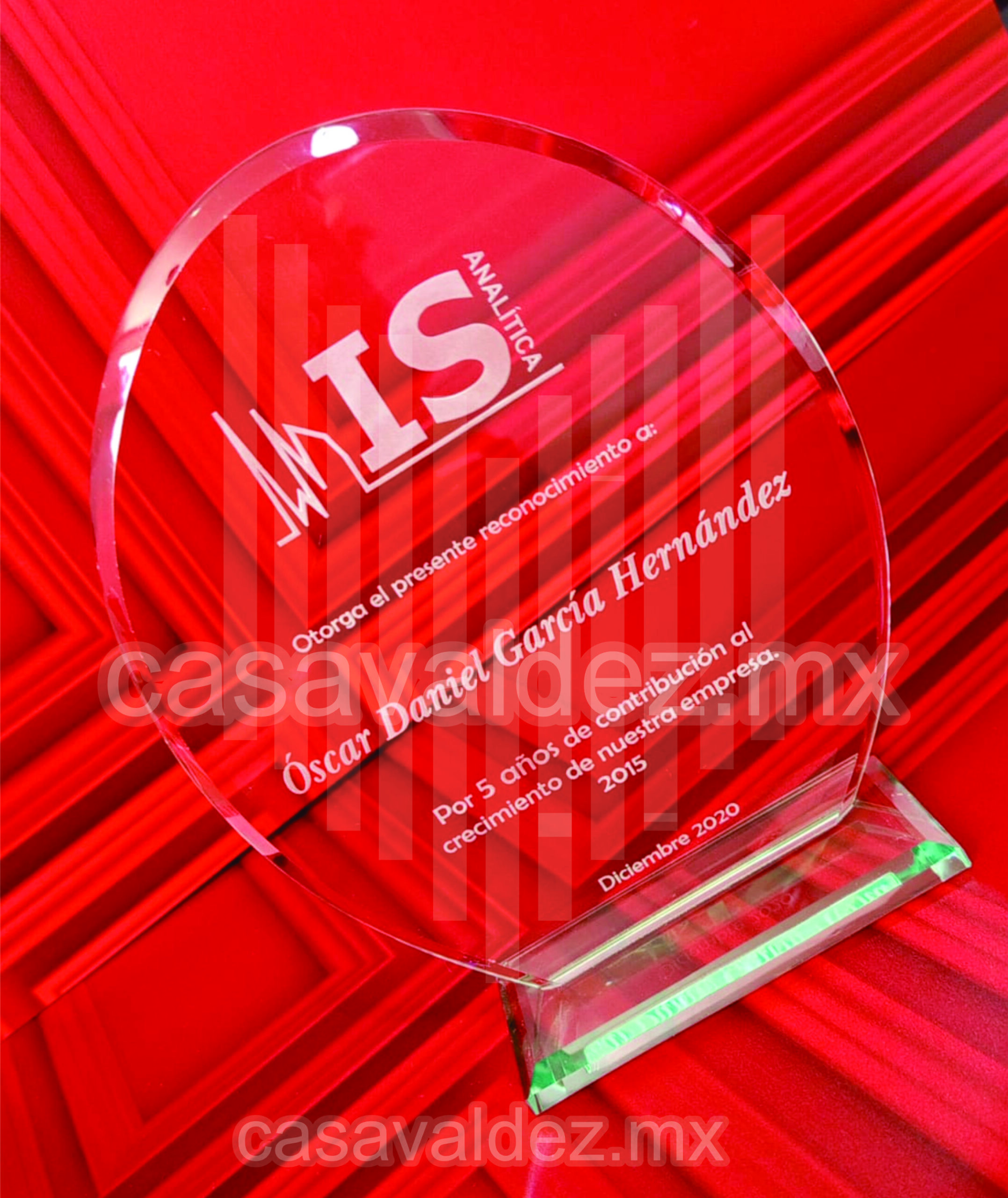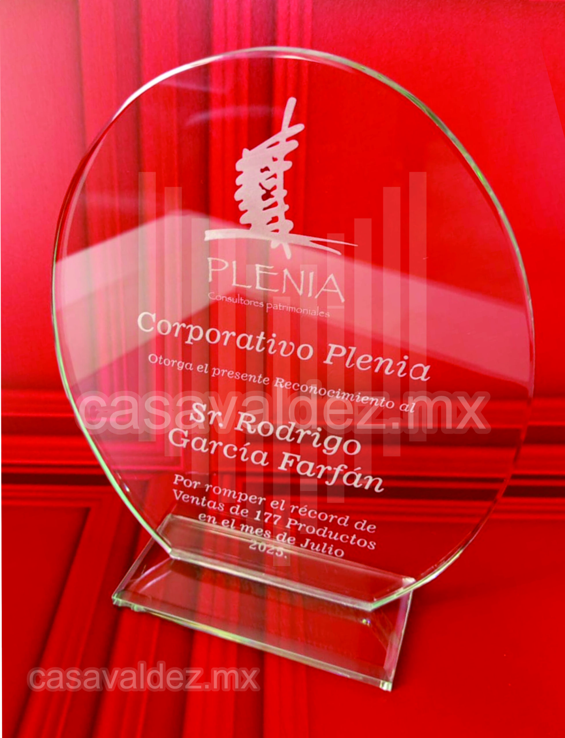 - En Casa Valdez diseñamos tu reconocimiento en vidrio.